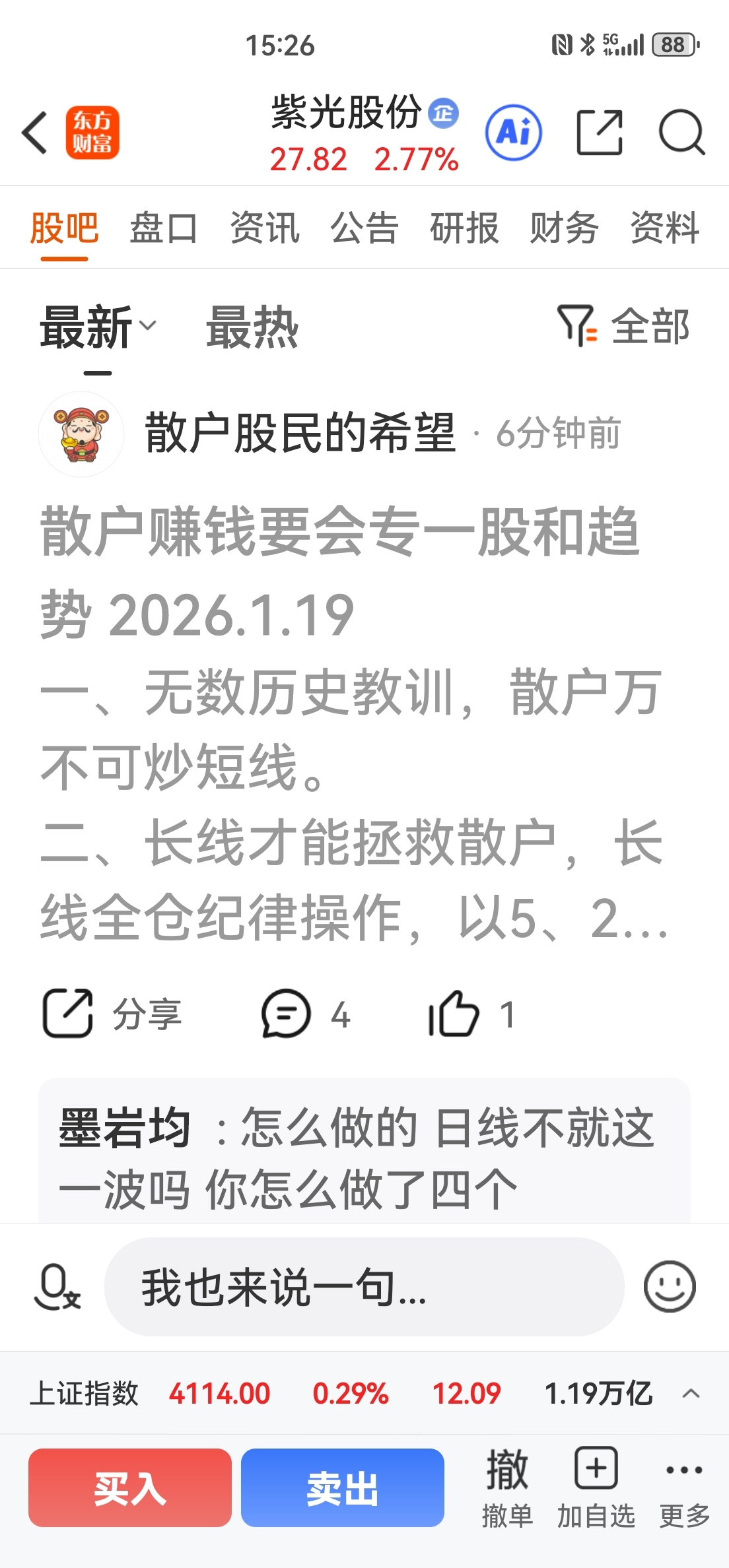 温馨提示: 1.根据《证券法》规定,禁止编造、传播虚假信息或者误导性信息,扰乱证券市场;2.用户在本社区发表的所有资料、言论等仅代表个人观点,与本网站立场无关,不对您构成任何投资建议。用户应基于自己的独立判断,自行决定证券投资并承担相应风险。《东方财富社区管理规定》