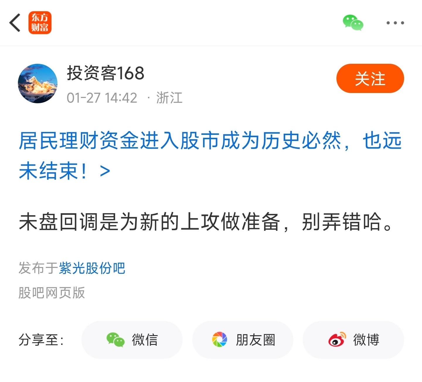 温馨提示: 1.根据《证券法》规定,禁止编造、传播虚假信息或者误导性信息,扰乱证券市场;2.用户在本社区发表的所有资料、言论等仅代表个人观点,与本网站立场无关,不对您构成任何投资建议。用户应基于自己的独立判断,自行决定证券投资并承担相应风险。《东方财富社区管理规定》