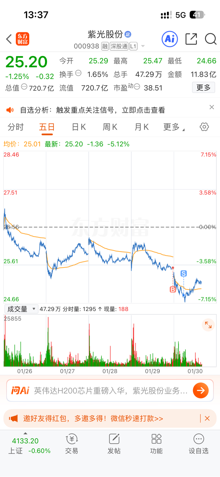 $紫光股份(SZ000938)$ 昨天尾盘买的,今天破位直接在低位割肉,满仓亏3个点,直接换捷佳伟创,亏的直接赚回来了