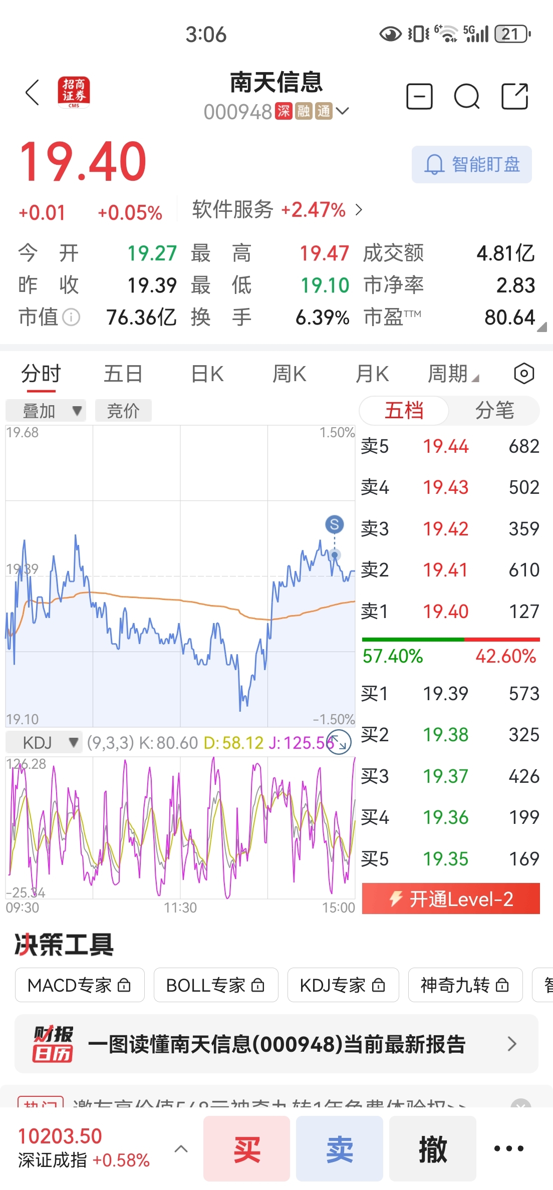 $南天信息(SZ000948)$ 19.40附近压力位,反复冲关,本人做短线的,没有耐心,今日清仓了,但个人认为明天周五很大机会突破压力位,后面空间很大!祝留下的发财!