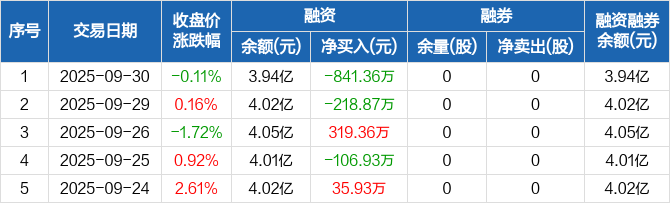 南天信息:融资净偿还841.36万元,融资余额3.94亿元(09-30)