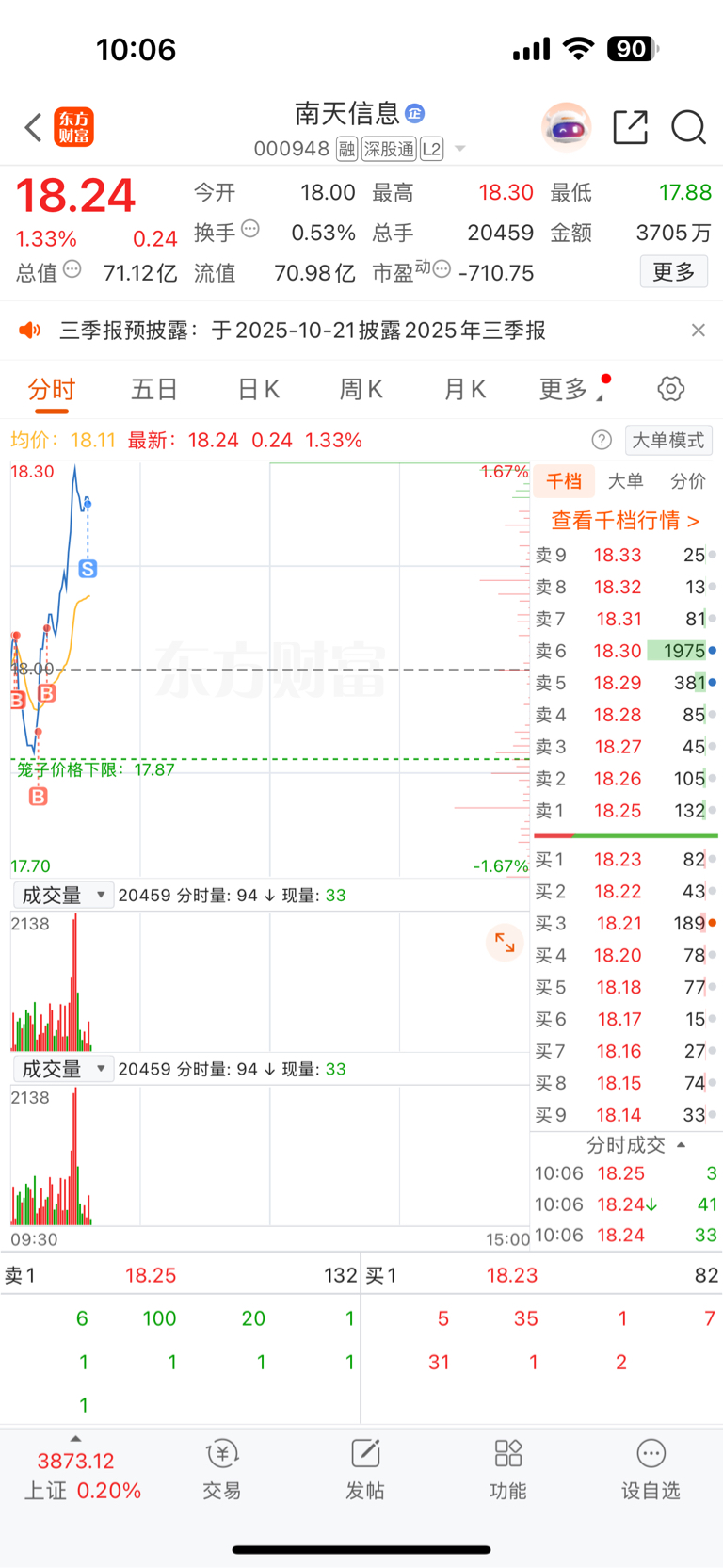 $南天信息(SZ000948)$ 上班没空盯盘,没卖到高点,操
