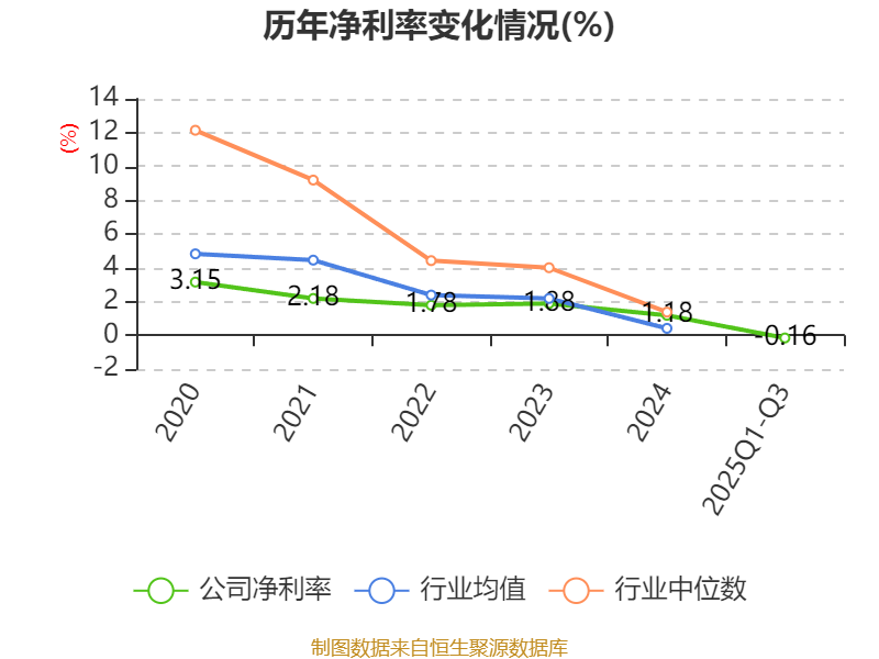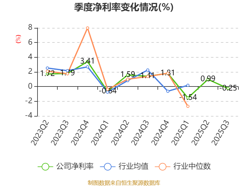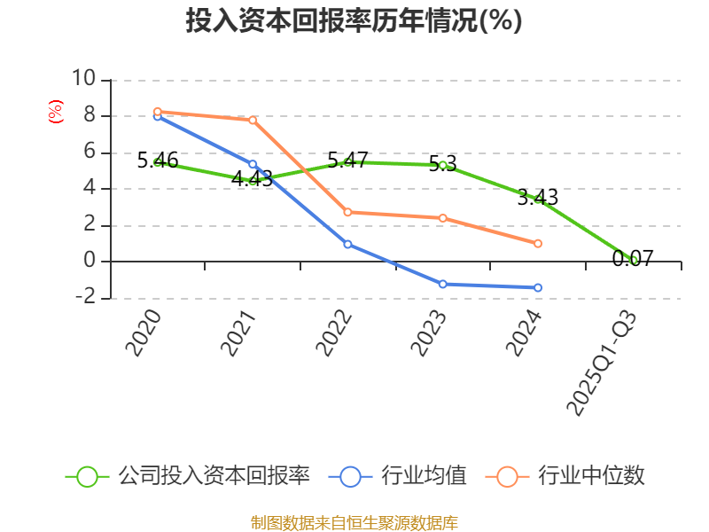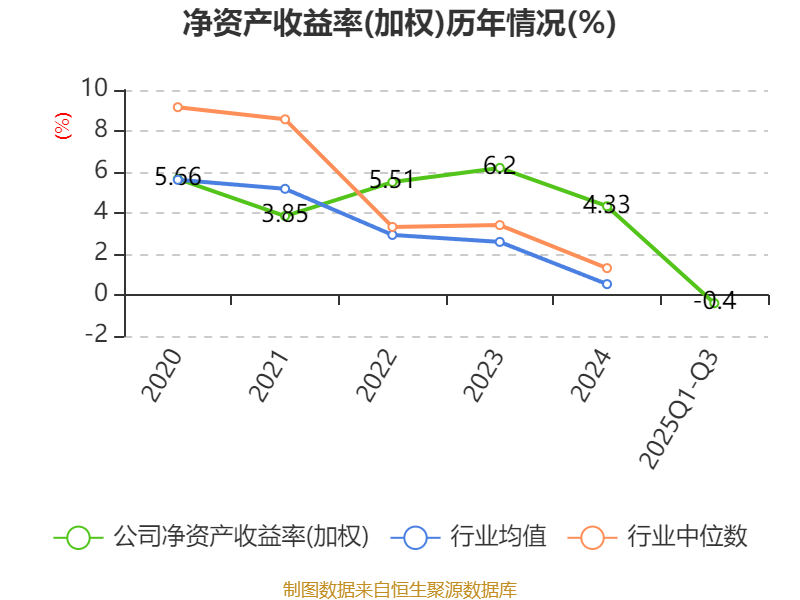 盈利能力方面, 2025年前三季度公司加权平均净资产收益率为-0.4%,同比下降2.51个百分点。公司2025年前三季度投入资本回报率为0.07%,较上年同期下降1.35个百分点。