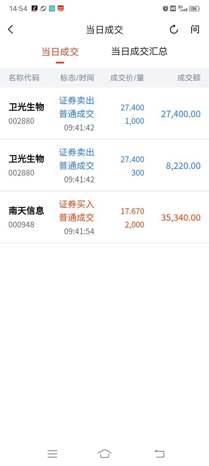 $南天信息(SZ000948)$ 每天都做T,以前是1900今天刚好二千股!!!