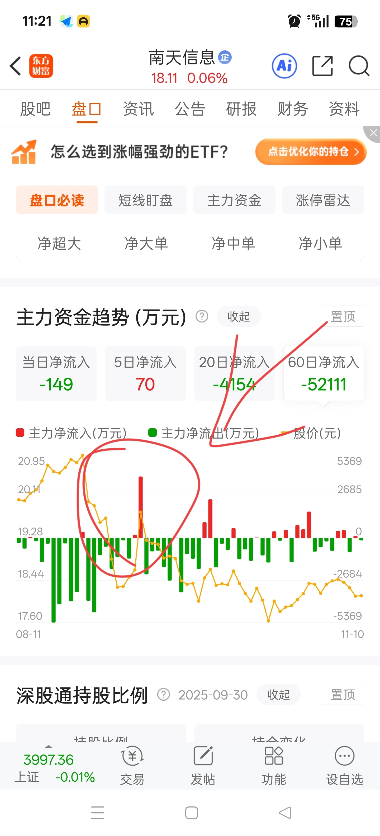 $南天信息(SZ000948)$ 看看这资金流入。无人问津
