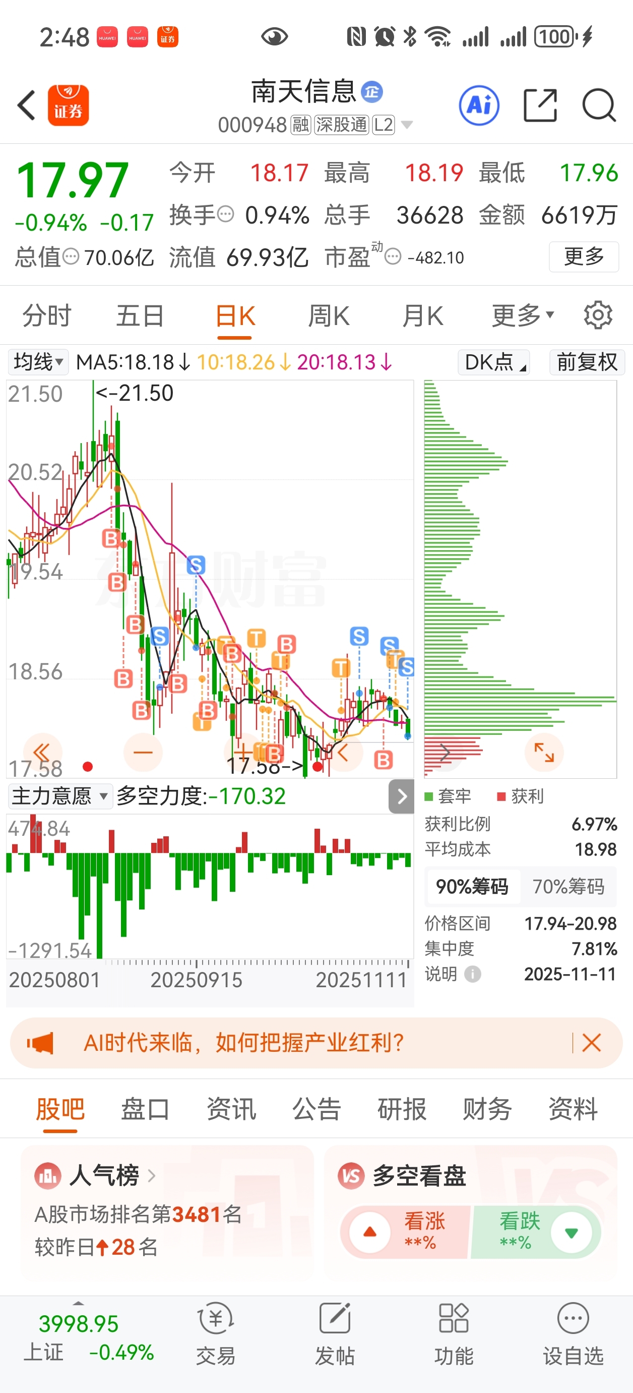 $南天信息(SZ000948)$ 割完了,真的是太失望了,拿三个月亏7万