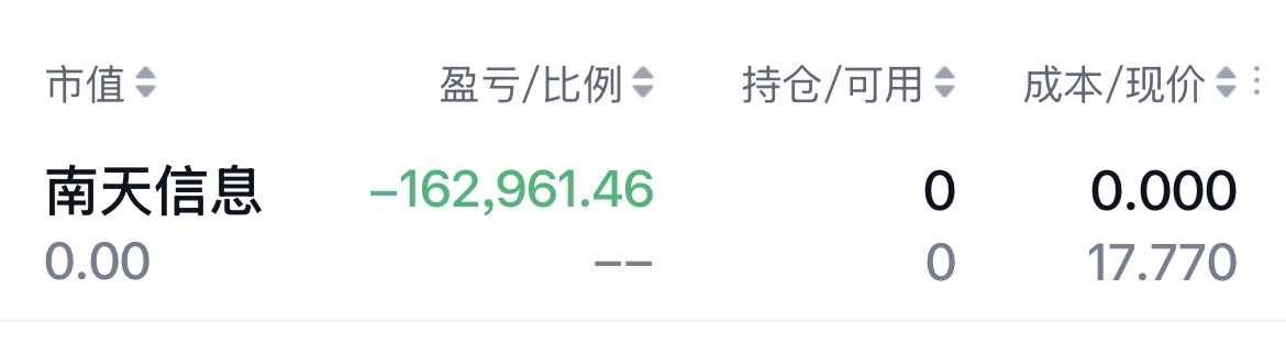 $南天信息(SZ000948)$ 谈了4个月恋爱,今天正式分手,放过彼此。原因:太折磨人了,也不稀罕你那么一点点的反弹了
