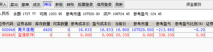 这俩月把我利润回吐了一部分,吓得我上周赶紧割肉清仓把资金转走了。昨天实在手痒又转了点钱回来玩玩。资金少了没压力。每天赚个酱油钱。南天主力不要辜负我。。资金不多了,就打酱油的。不要盯着我这三瓜俩枣的,你要是想深跌,我就把资金转回来逢低慢慢买,慢慢T。