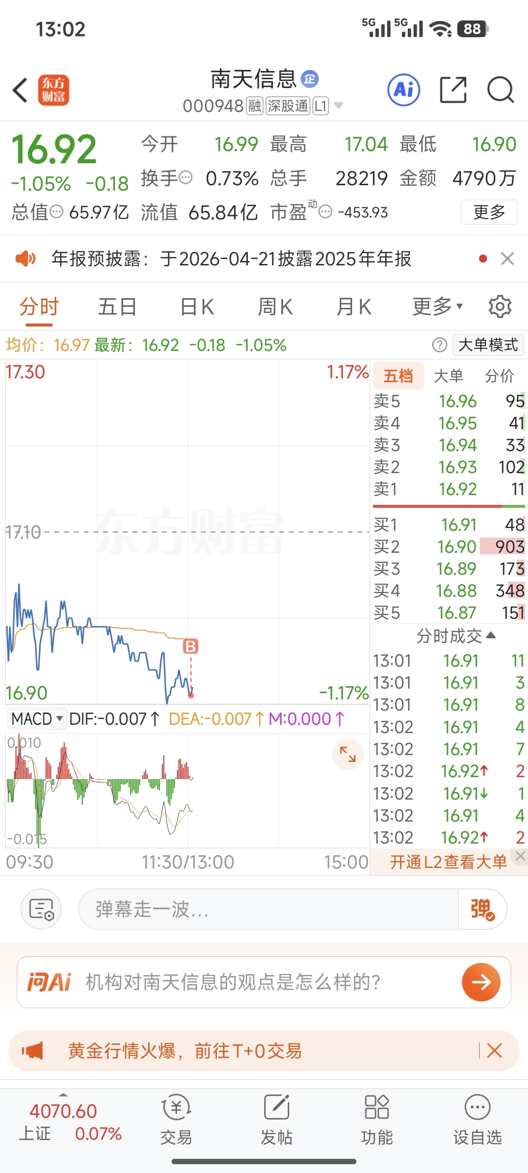 $南天信息(SZ000948)$ 我买了,你可以砸了