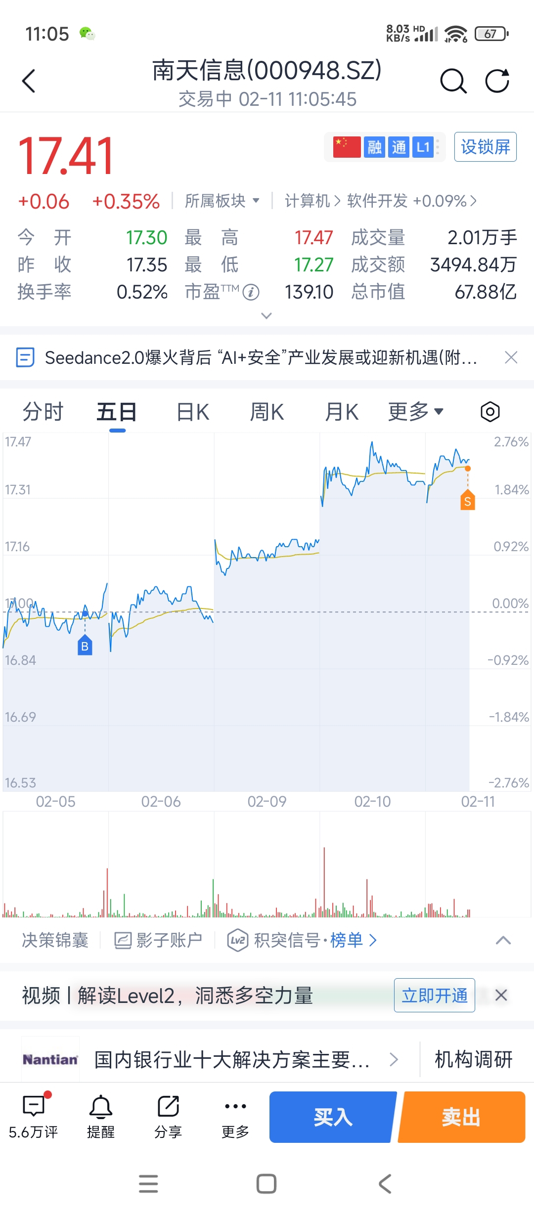 $南天信息(SZ000948)$ 我不贪先溜了