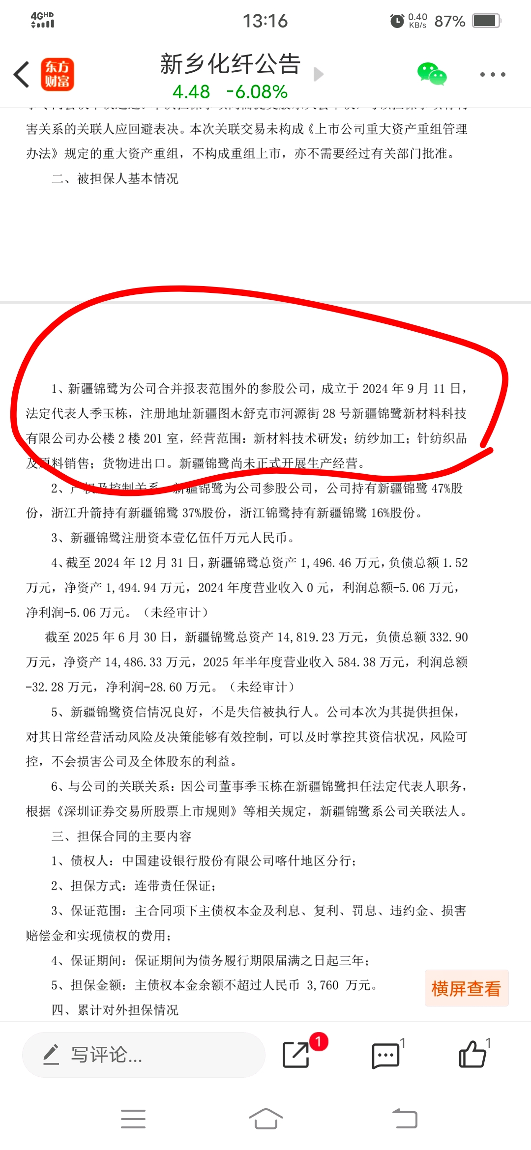 $新乡化纤(SZ000949)$ 新疆这个公司不在合并报表范围内别被忽悠了