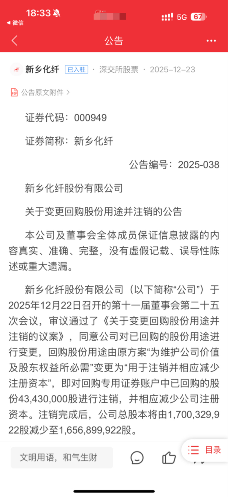$新乡化纤(SZ000949)$ 不错吧,4000多万注销