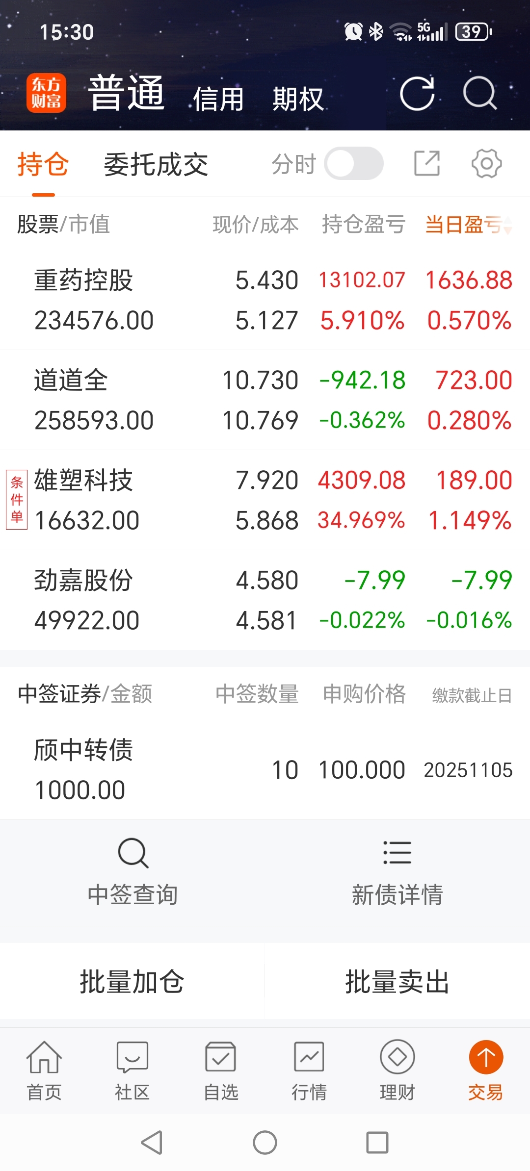 $重药控股(SZ000950)$ 今天重药数票子1636.88元,小碎步沿5日线一路向北,稳健但缺激情。2支重仓股本月会逐渐分仓,准备去刀峰上跳把舞!