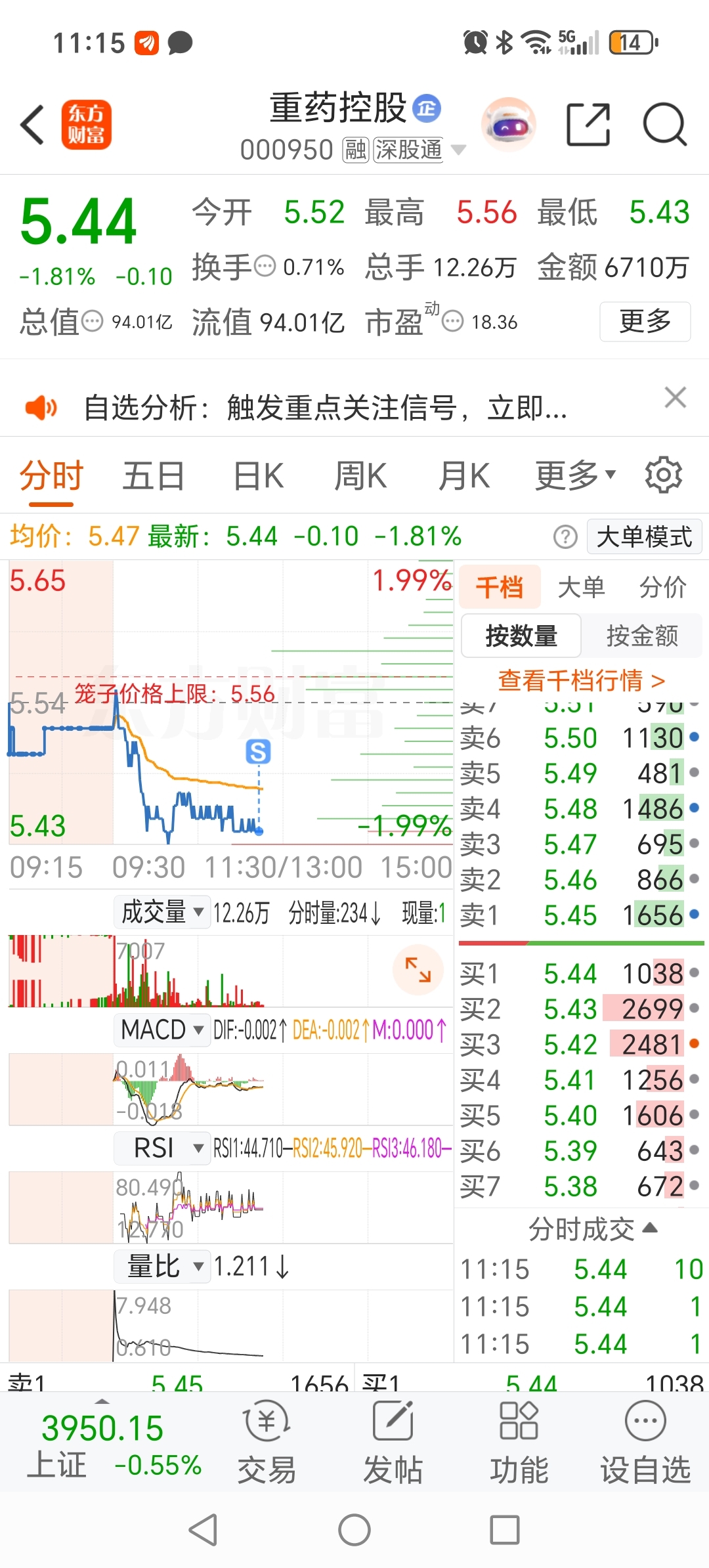 大盘触底回升,止盈重药控股,祝还在车上的股友发财!