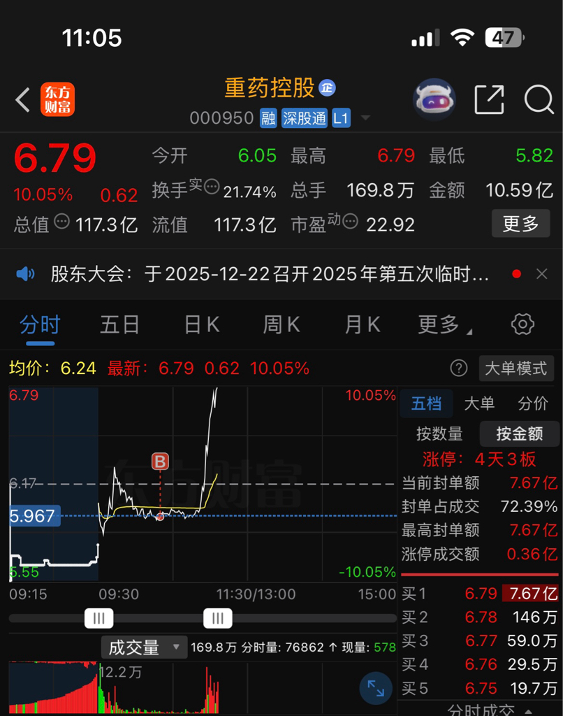 $重药控股(SZ000950)$ 我买的单日最强股。13个点。