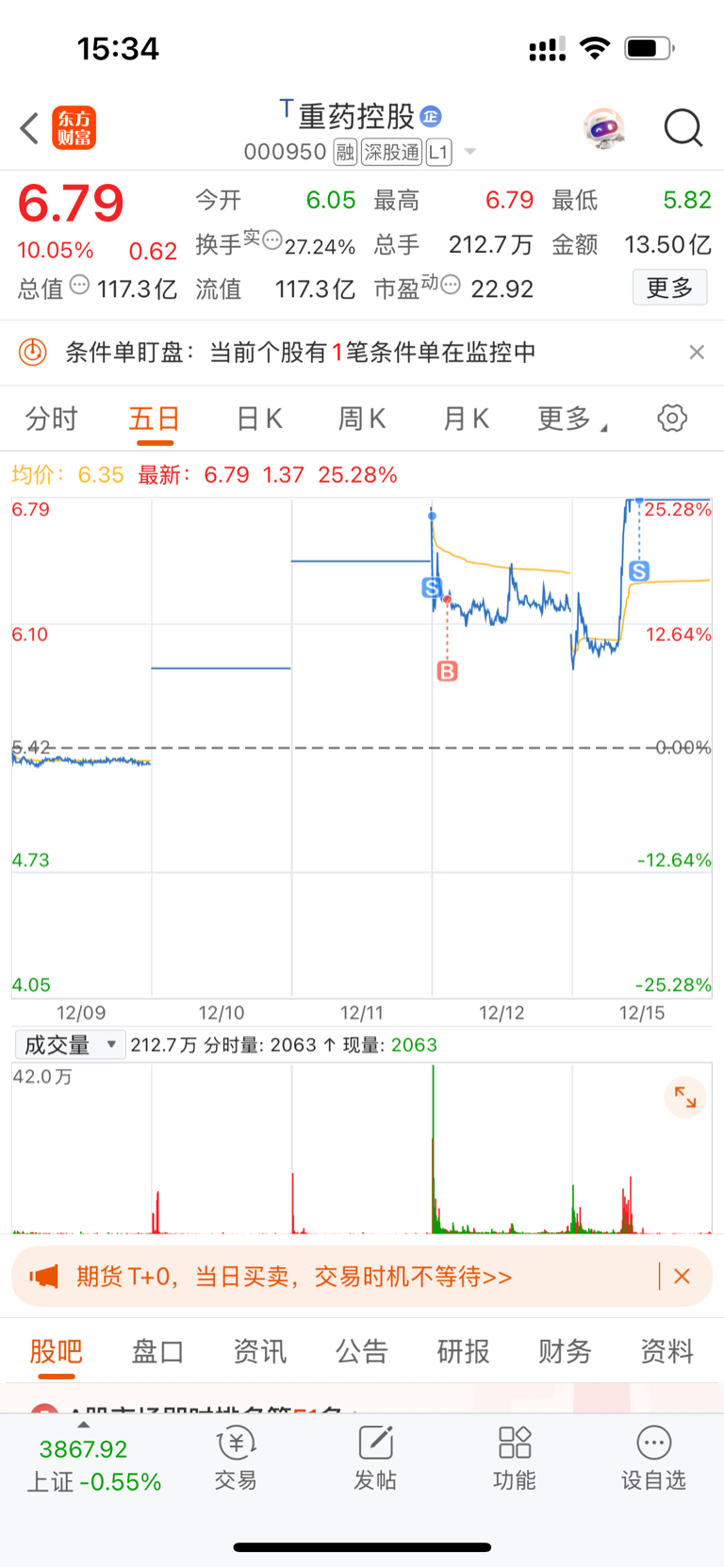 $重药控股(SZ000950)$ 其实,我还是想做T的