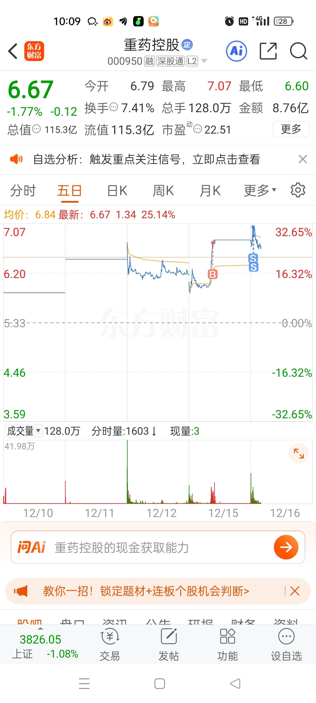 $重药控股(SZ000950)$ 垃圾,跑咯