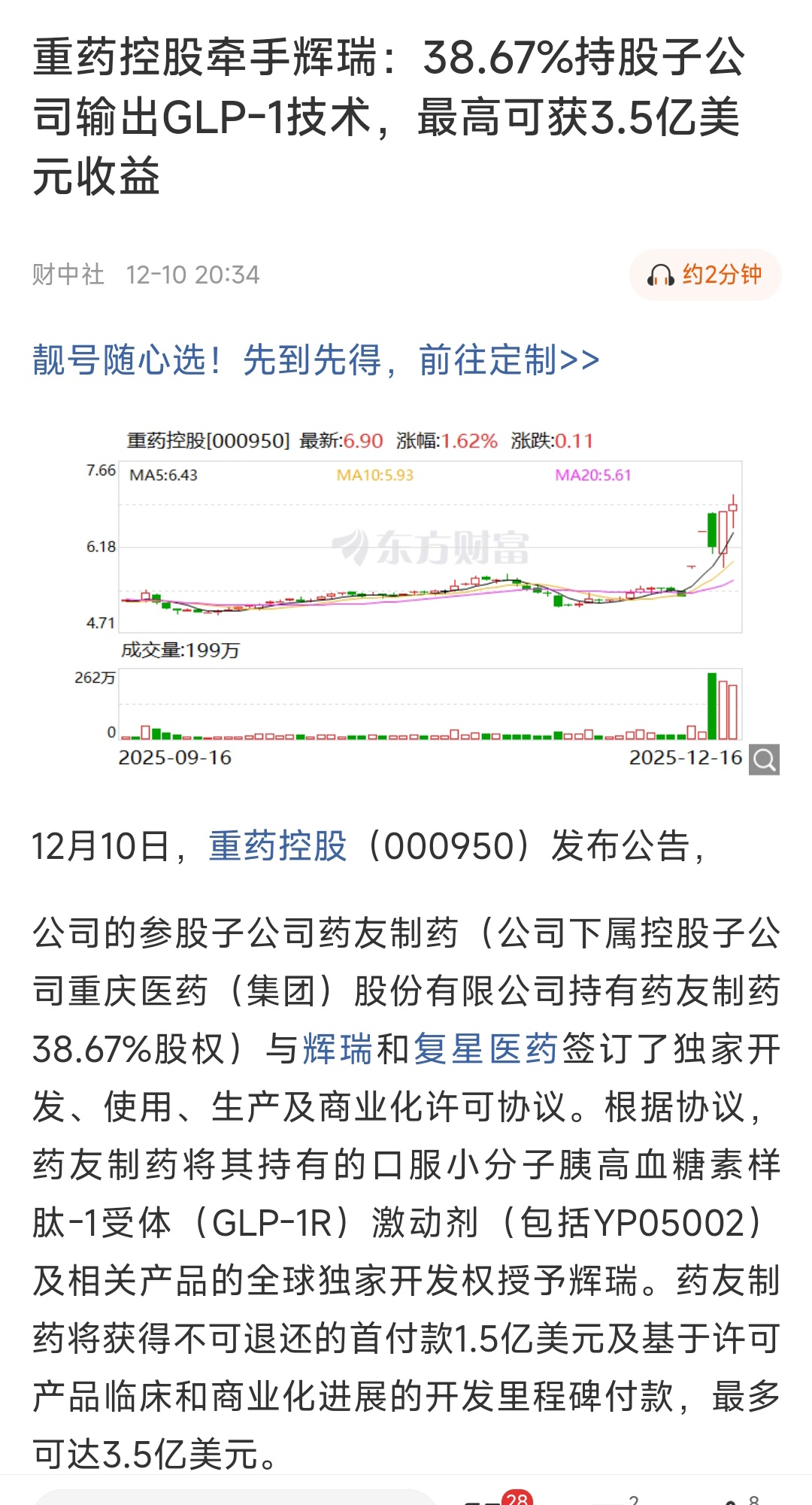 $重药控股(SZ000950)$ 创新药+机器人+啤酒+医美+养老+辅助生殖+国企,连板启动,有望攻击8.16,5日线买入。三季报净利润3.84亿元增31%,每股收益0.22元