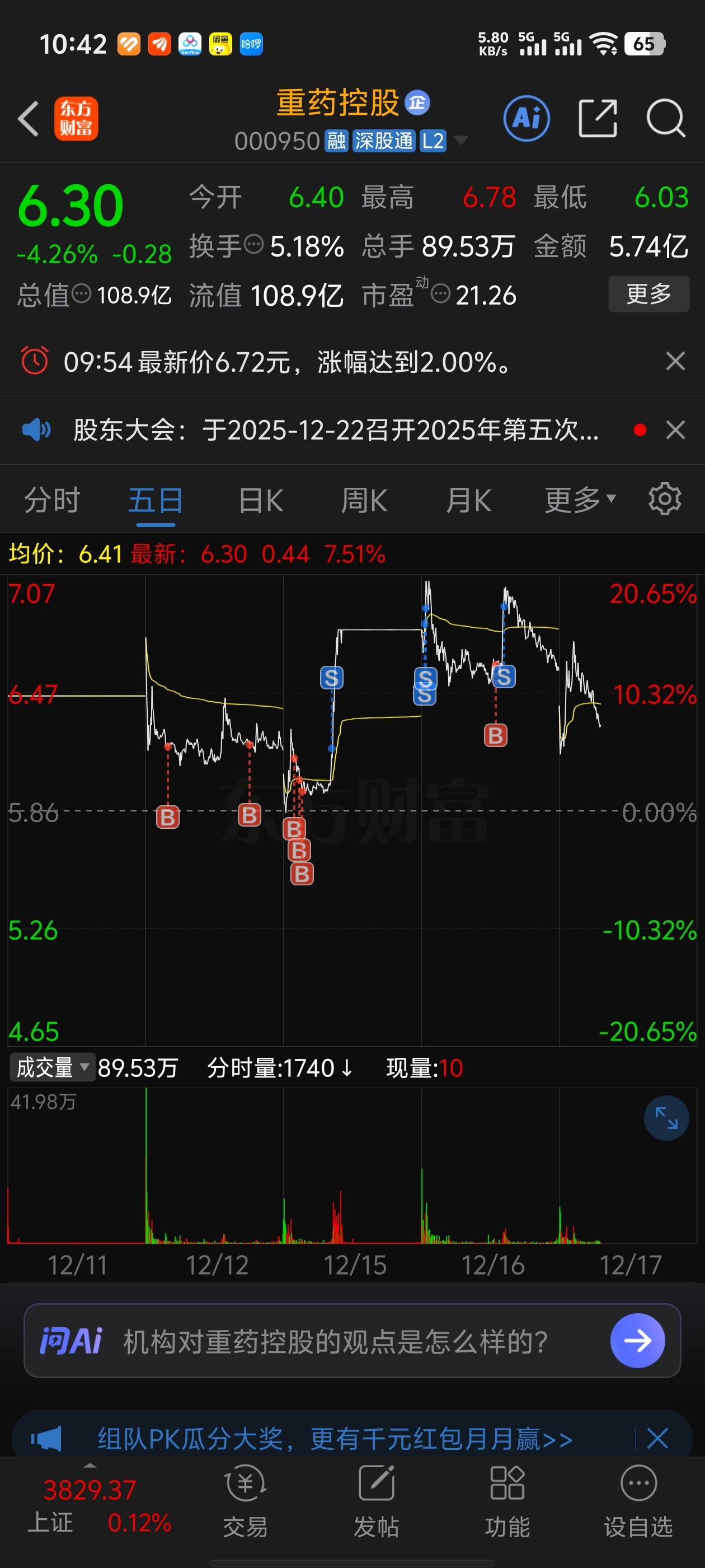 $重药控股(SZ000950)$ 你不下来5.99块我肯定不接,
