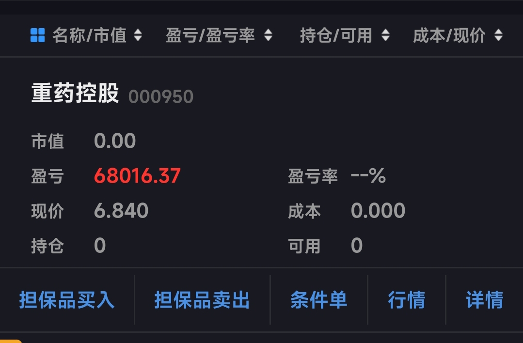 $重药控股(SZ000950)$ 35天的时间融资买入52000股,赚了6.8W,哥哥我满足了!!