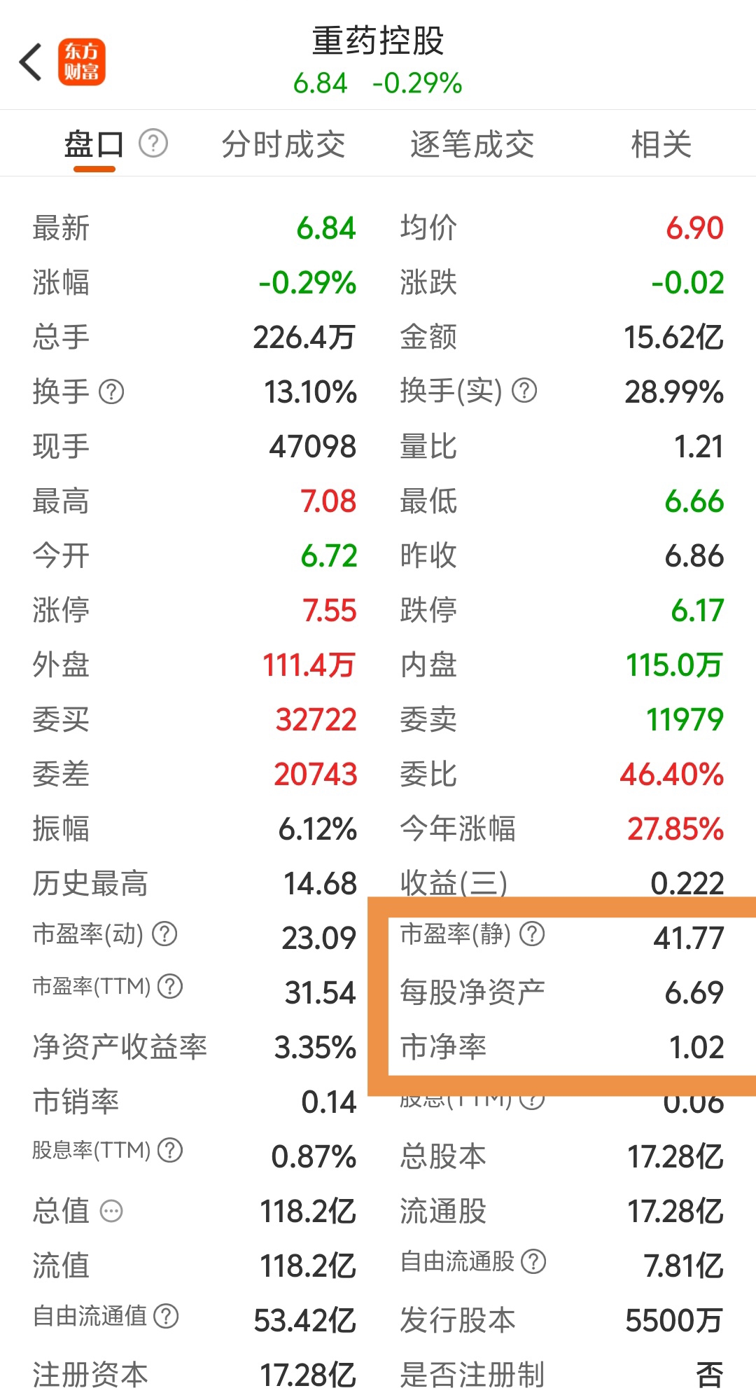 $重药控股(SZ000950)$ 每股净资产6.69元