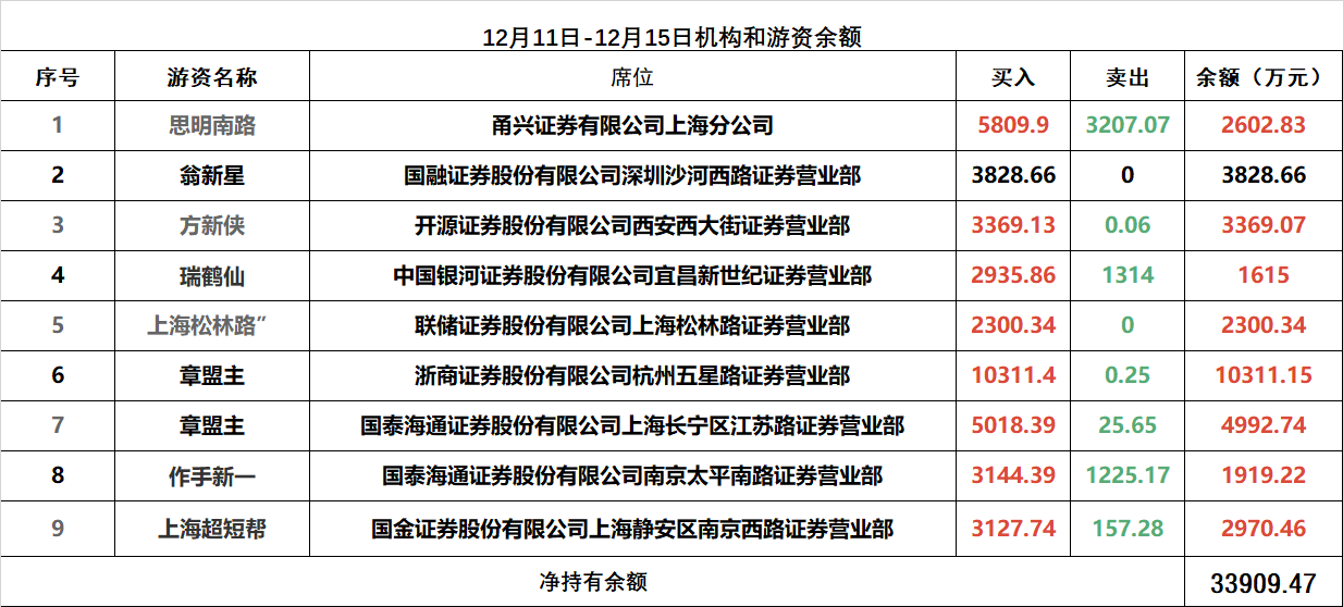 【龙虎榜】重磅!截止19日游资场内资金余额一览表