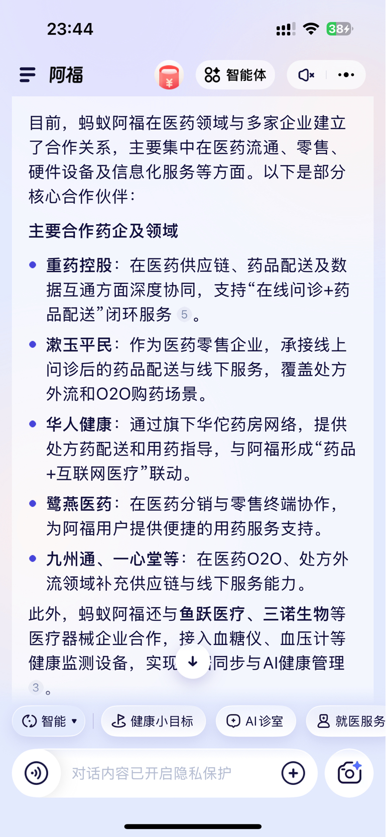 兄弟们别在硬找利好了。知名药企和蚂蚁阿福都有合作。太正常了