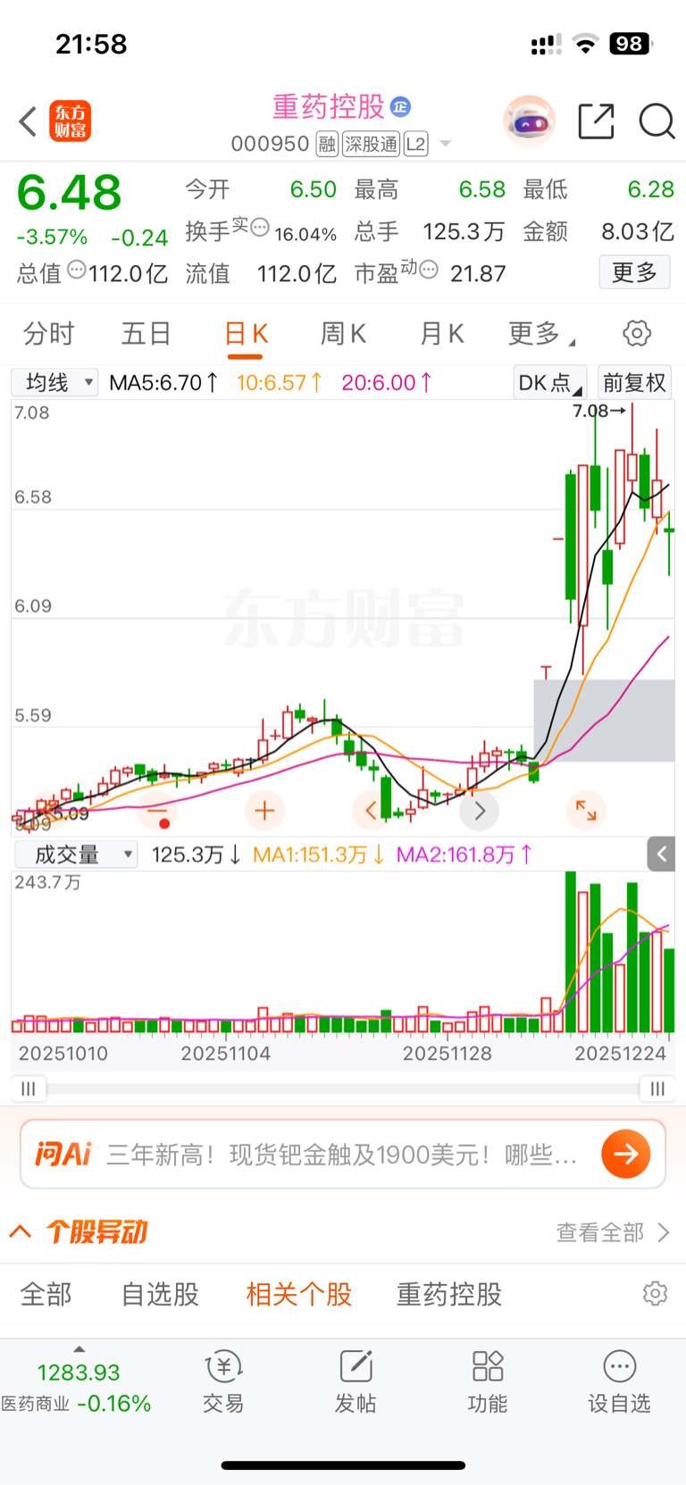 $重药控股(SZ000950)$ 这走势随时大涨,明天买进,这走势肯定有人布局了!