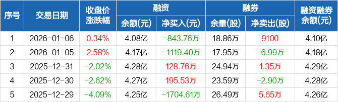 重药控股:融资净偿还843.76万元,融资余额4.08亿元(01-06)