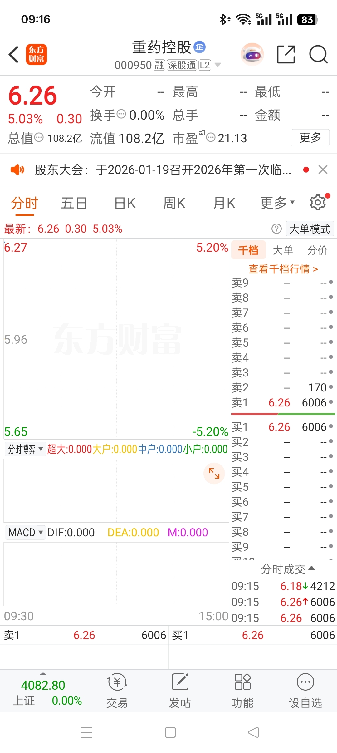 $重药控股(SZ000950)$ 发财了,昨天买进就高开五个点