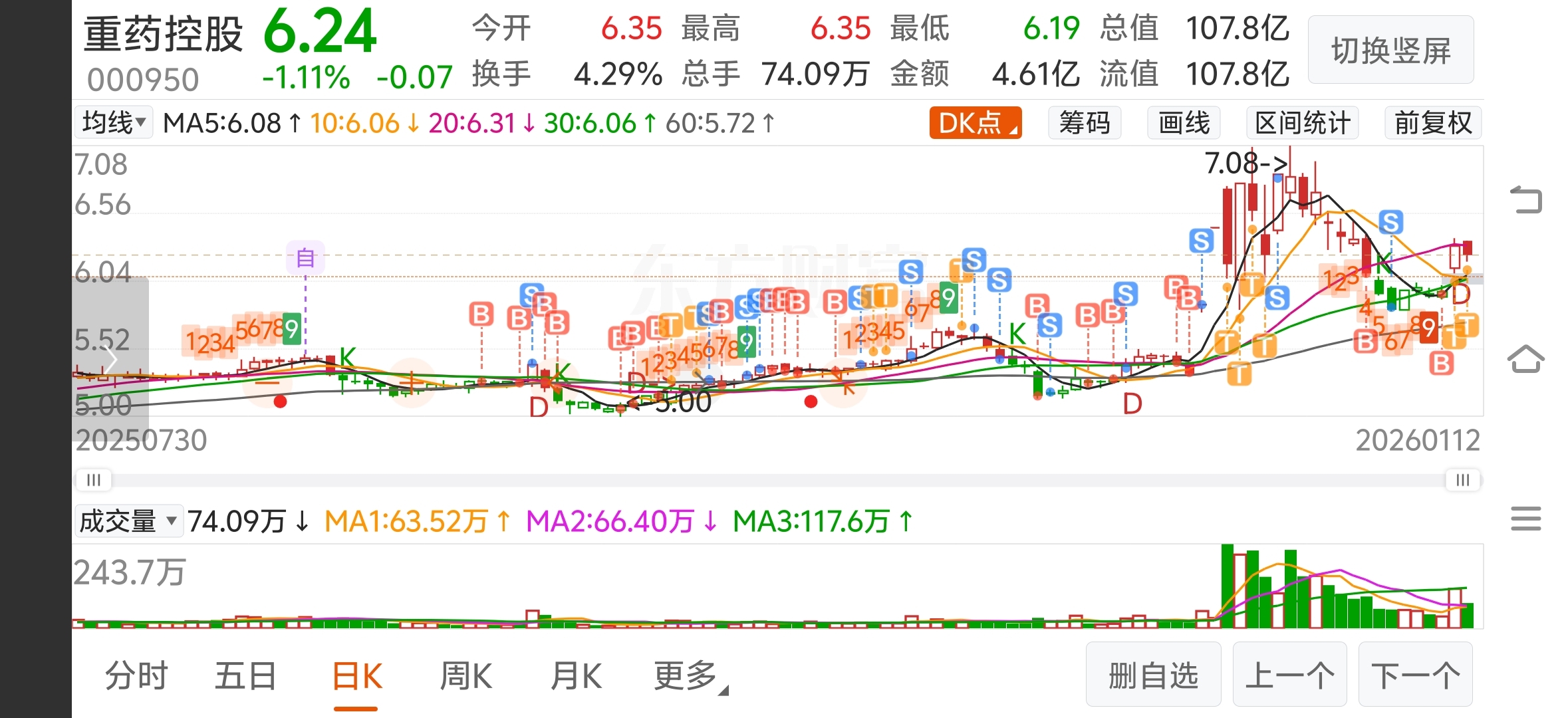 $重药控股(SZ000950)$ 今天浮盈33.40元