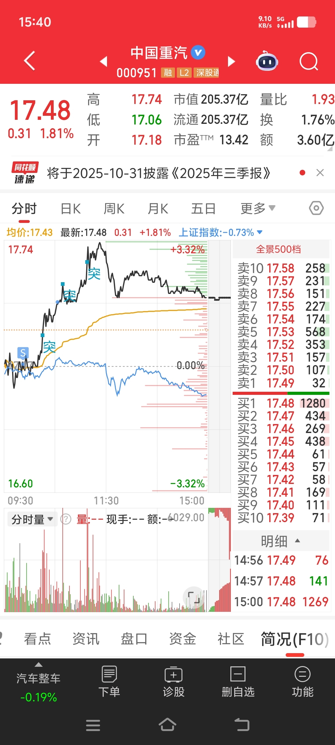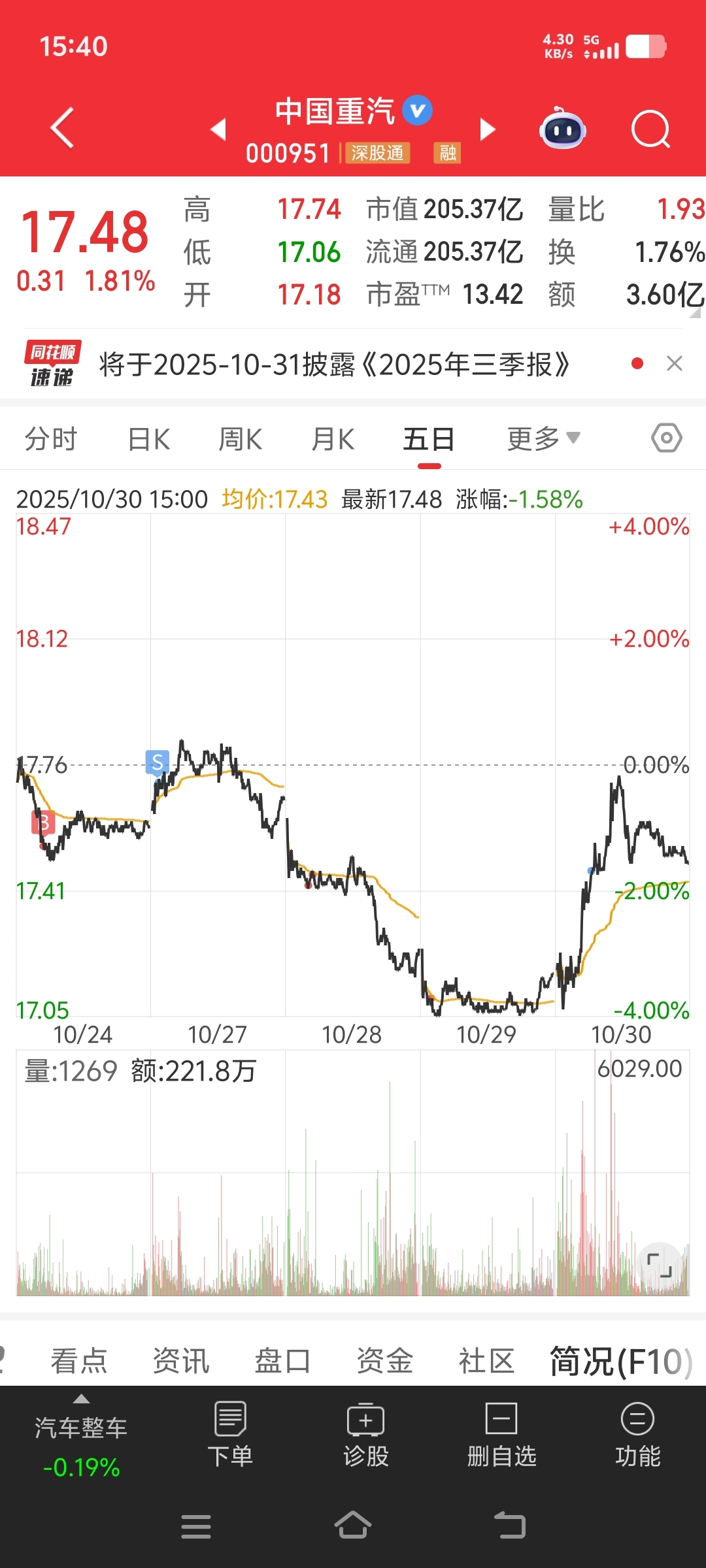 大卡车中国重汽又去抢了个反弹都抛了腾出来的资金都去补仓了