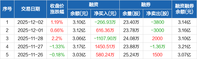 中国重汽:融资净偿还266.93万元,融资余额3.1亿元(12-02)