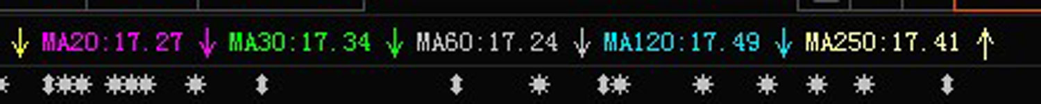 17.50附近压力位重叠较多,如要突破必须放量才行......。