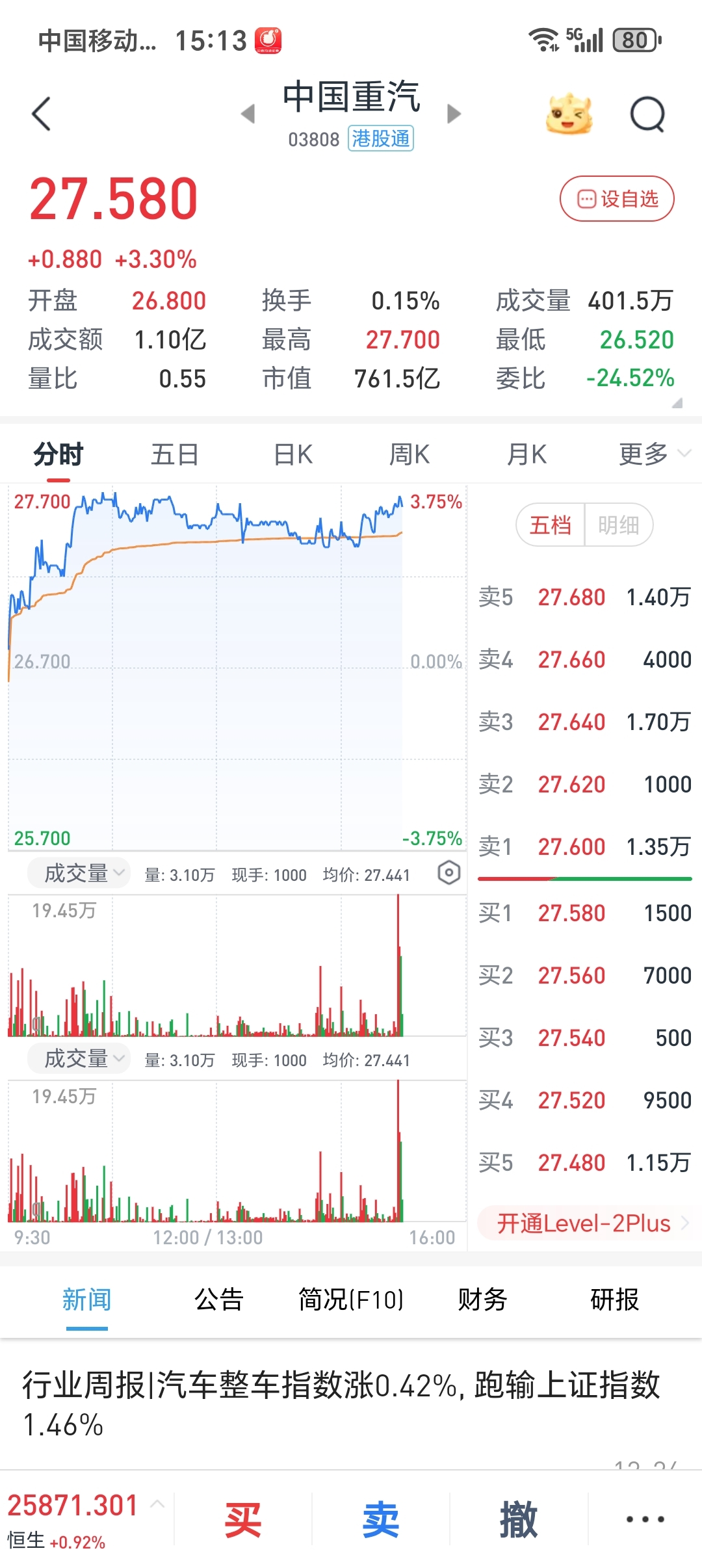 中国重汽的港股涨的挺好的