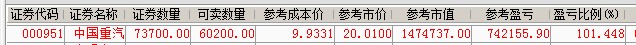 庆贺重汽单一个股盈利首超??W