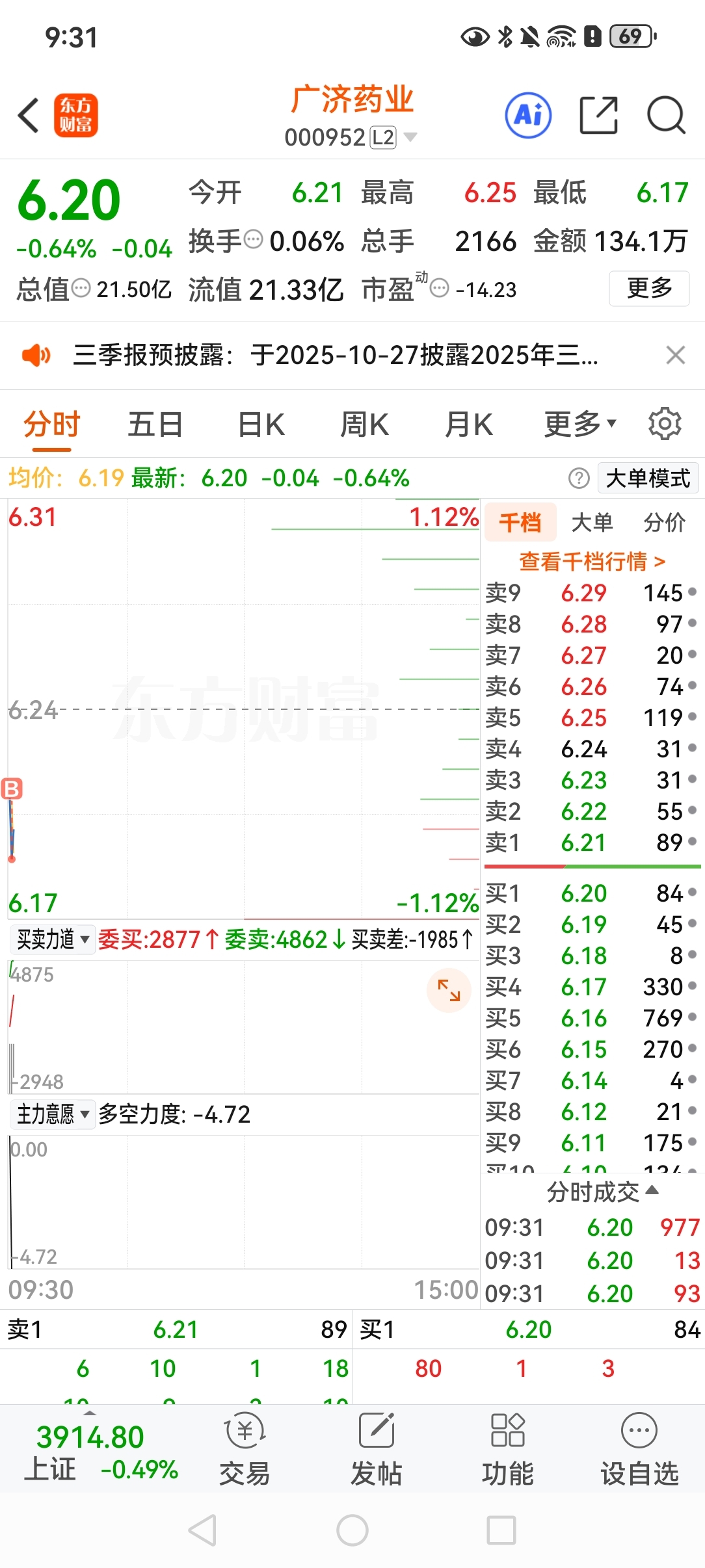 $广济药业(SZ000952)$ 继续搞$两面针(SH600249)$ 昨天针90-91出的换到广济