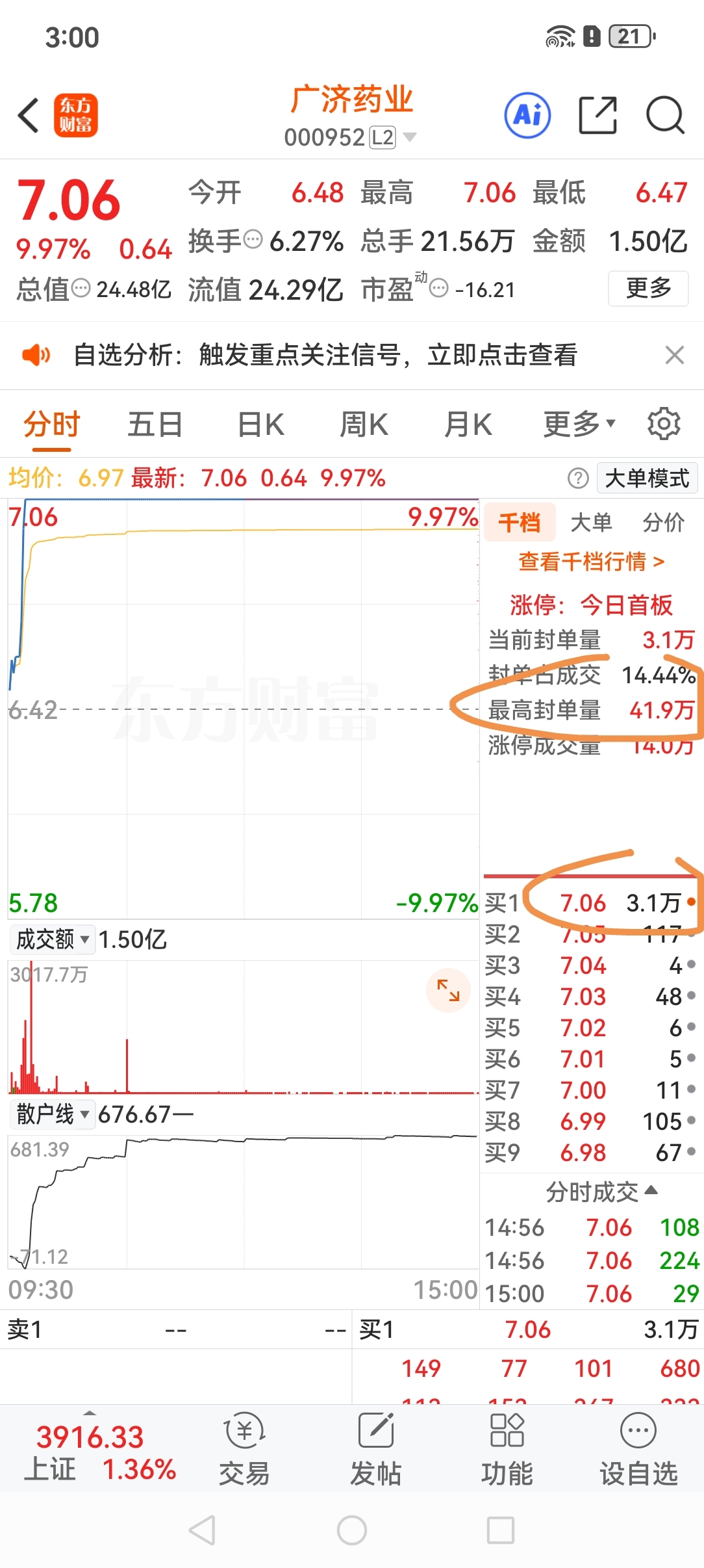 为啥广济45万封单突然撤回只有3万?懂的就懂。本月持股两面针或者广济跑赢,前者8