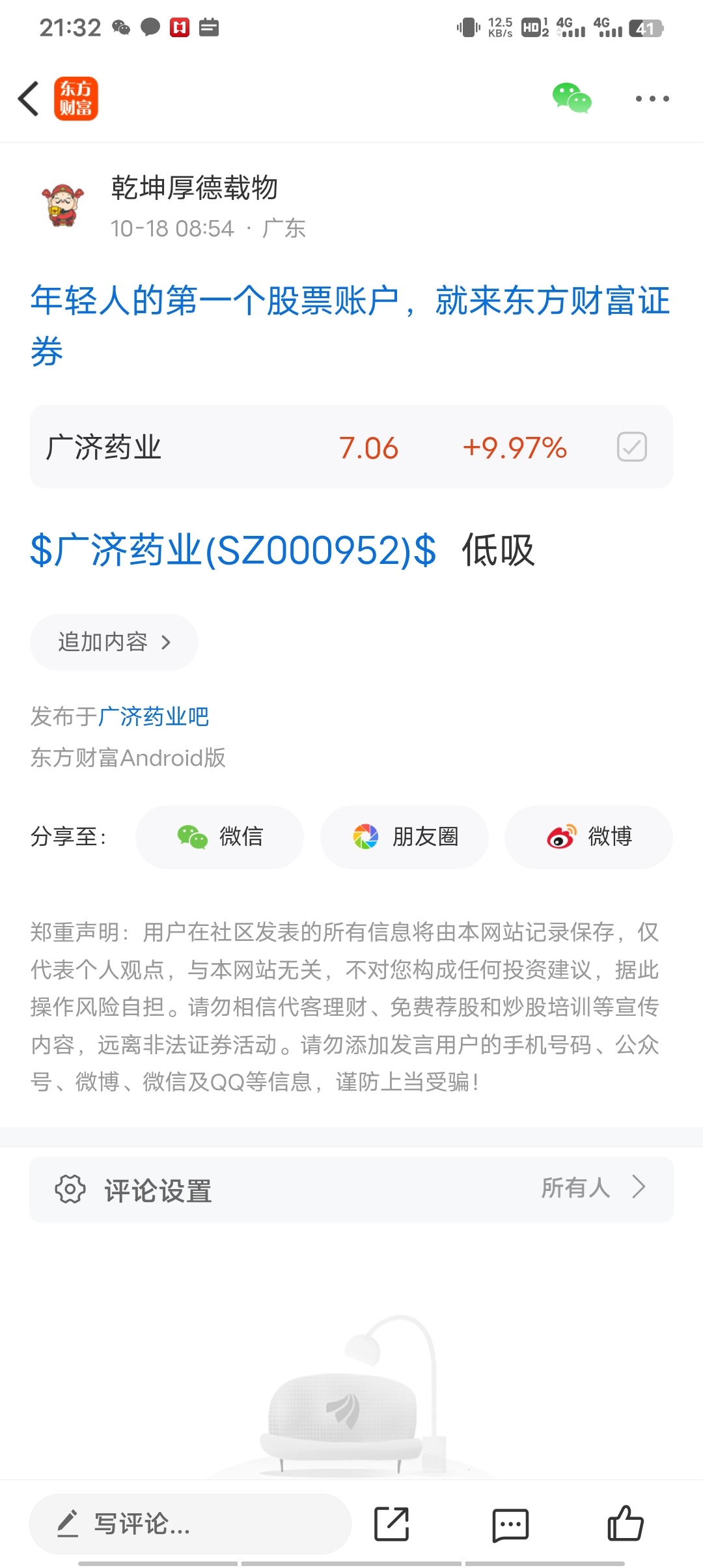 温馨提示: 1.根据《证券法》规定,禁止编造、传播虚假信息或者误导性信息,扰乱证券市场;2.用户在本社区发表的所有资料、言论等仅代表个人观点,与本网站立场无关,不对您构成任何投资建议。用户应基于自己的独立判断,自行决定证券投资并承担相应风险。《东方财富社区管理规定》