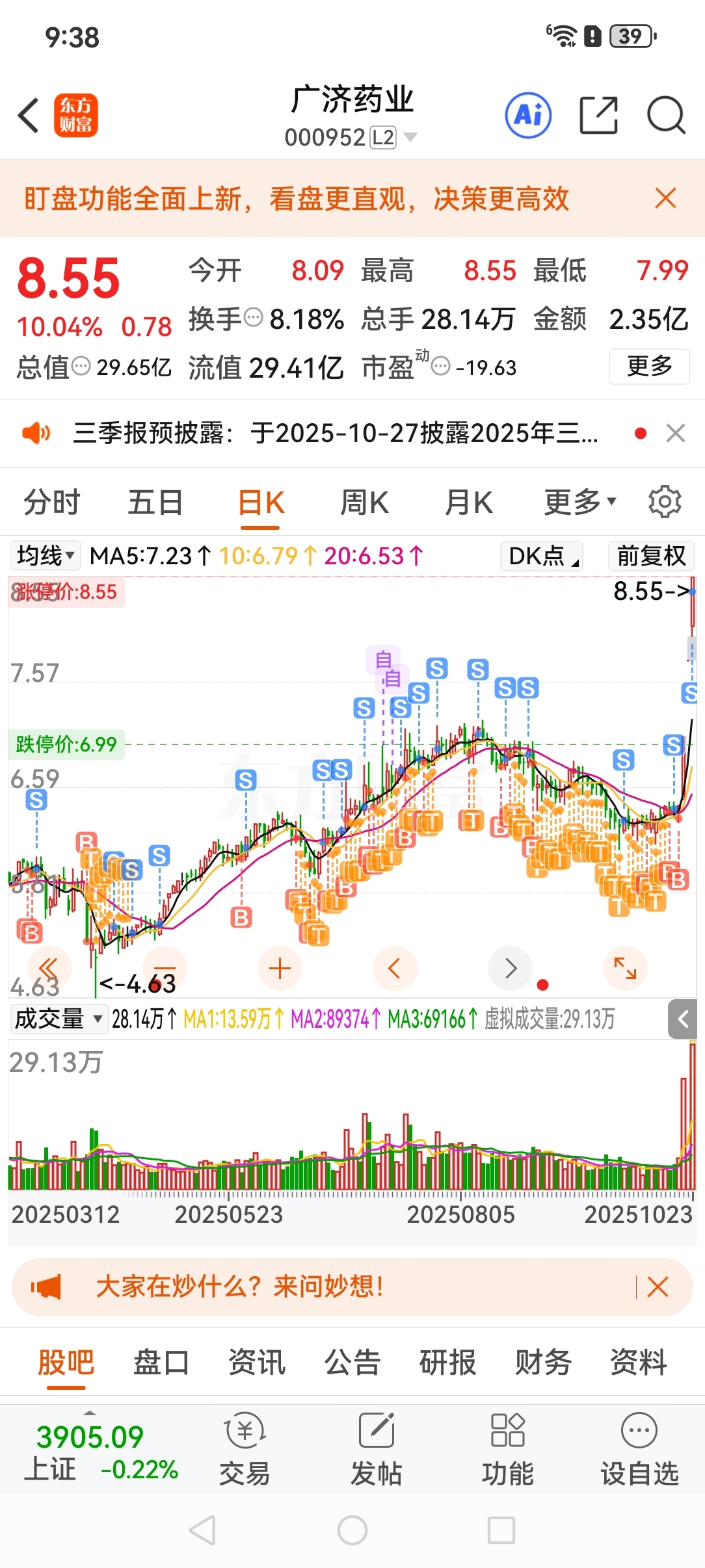 $广济药业(SZ000952)$ $两面针(SH600249)$ $*ST宇顺(SZ002289)$ 我太阳!广济被洗了1/3,44-55附近出了一些,周一加仓的,三个涨停板