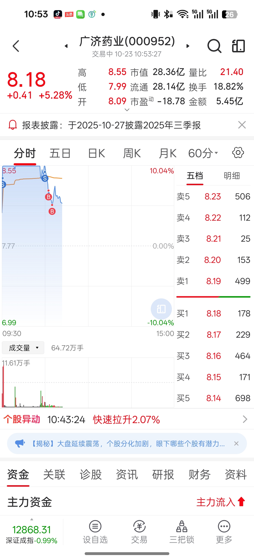$广济药业(SZ000952)$ 我走了但是我又进来了,以后药业龙头