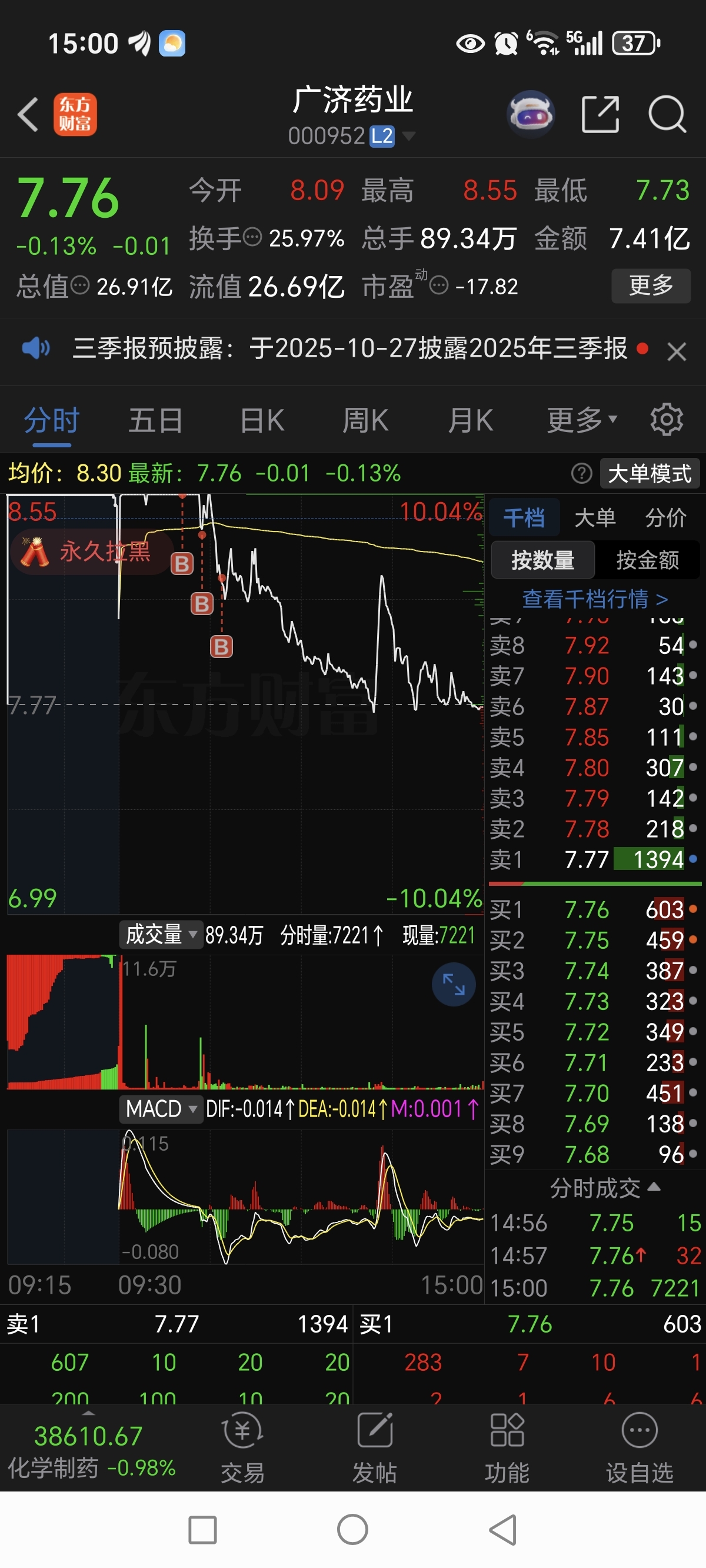 $广济药业(SZ000952)$ 明天集合竞价就走