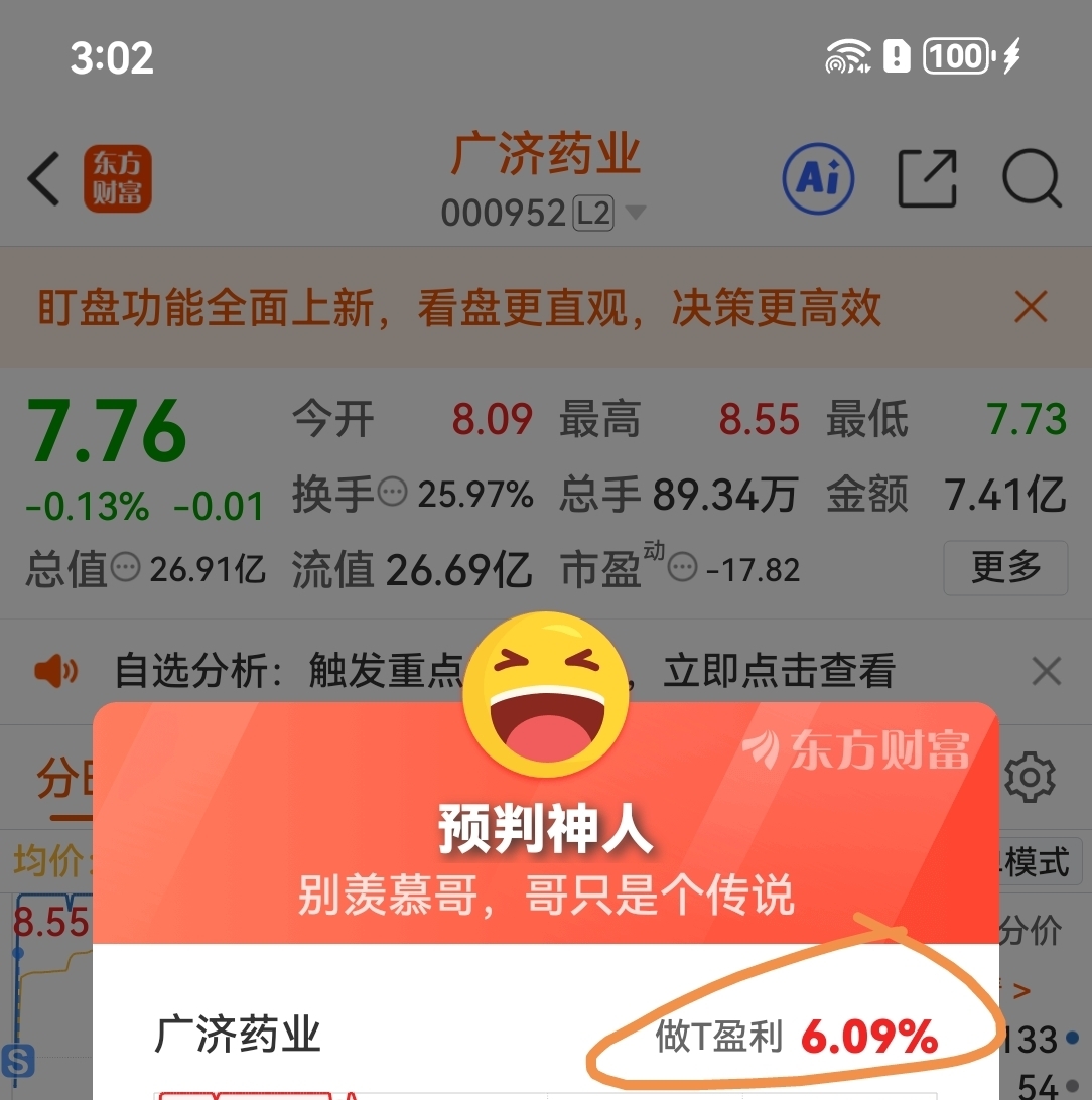 $广济药业(SZ000952)$ $*ST沐邦(SH603398)$ $两面针(SH600249)$ 广济涨停附近赚了接近三个版40%利润(卖出发帖后封了个把小时)。今天收盘跳出暂时盘中做差价还盈利6%,看来明天暴跌6%我无所谓,珍珍很好,被我们拿捏,服服帖帖。不是吗?我又要淡出广济吧,可能去一个新的标的,或者回到两面针,6.25守株待针。