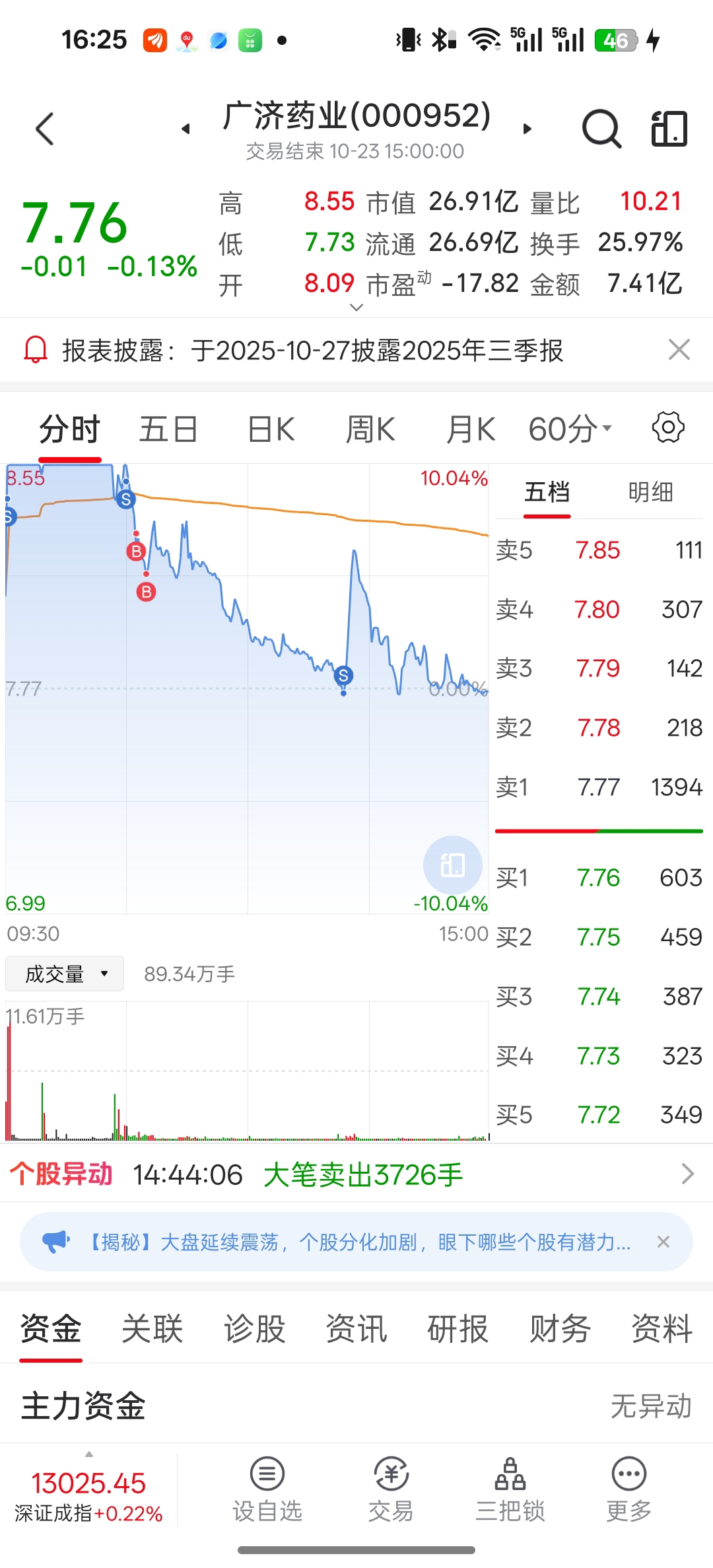 $广济药业(SZ000952)$ 并不是我不格局,是主力逼我卖的,想绿我没门,开板我卖,然后跌下来我买回去,结果尾盘这样我就卖了