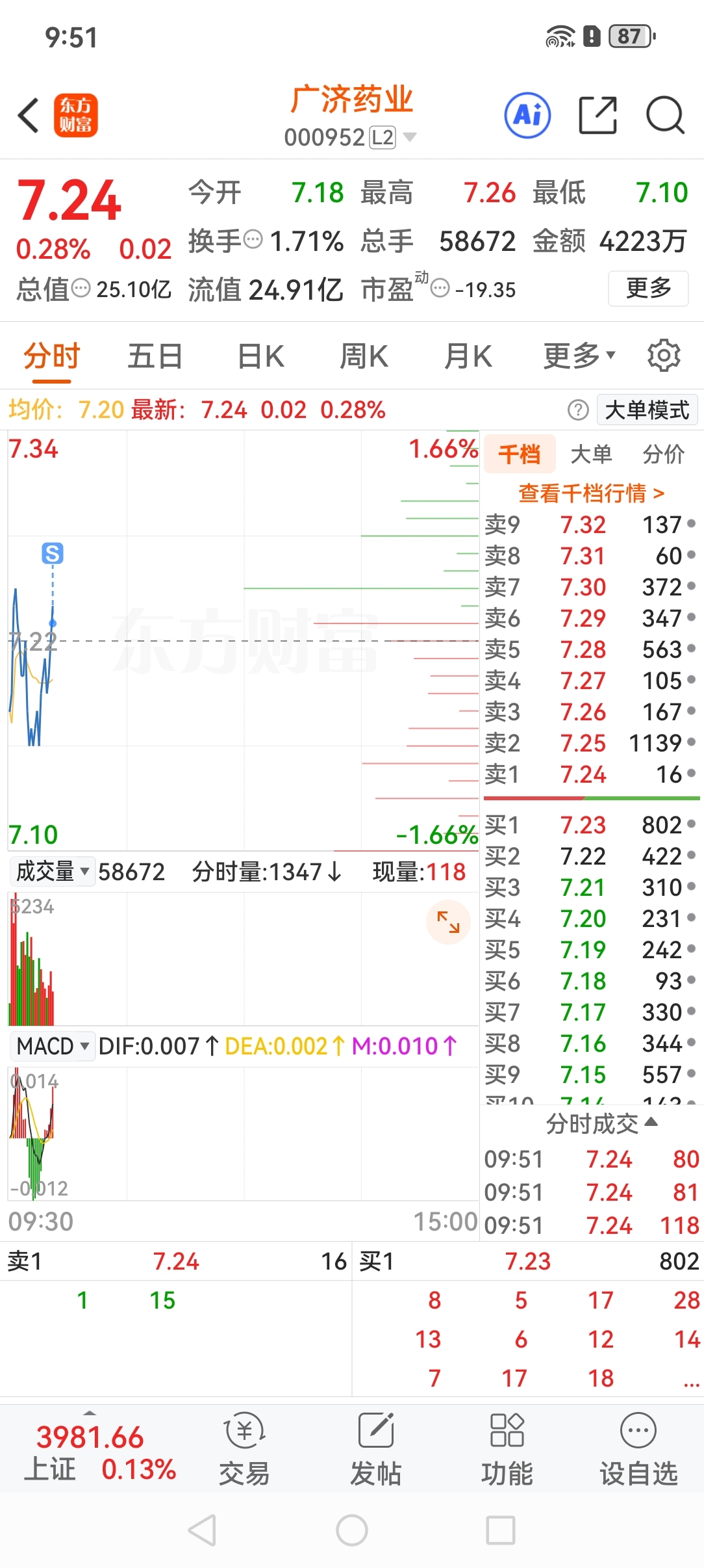 $广济药业(SZ000952)$ $两面针(SH600249)$ $*ST宝鹰(SZ002047)$ 真真不懂,广济除了昨天和以前低位买的