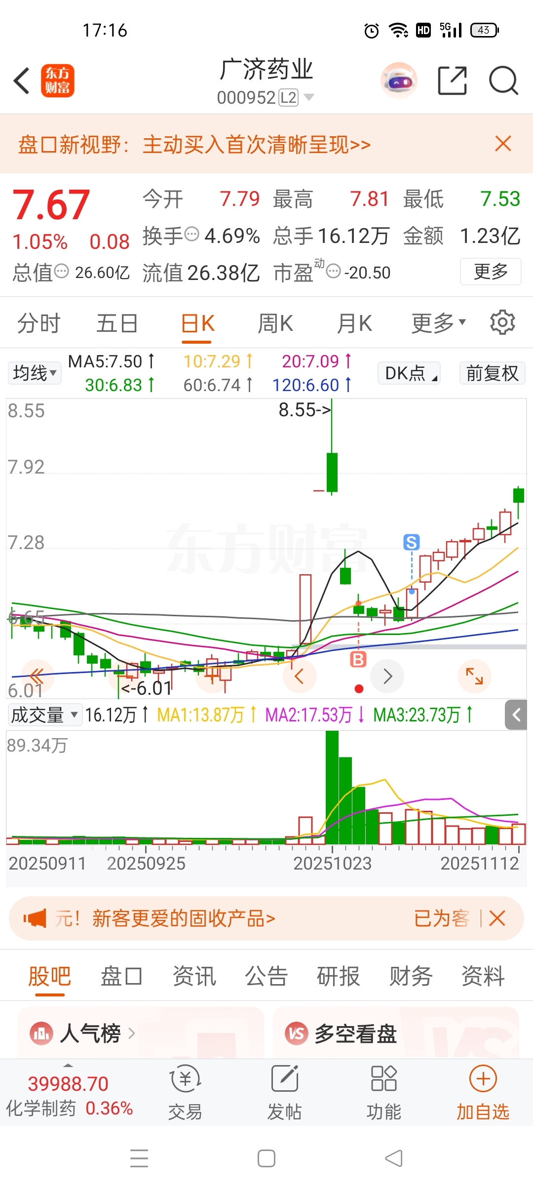 $广济药业(SZ000952)$ 我也跑的太快了,赚钱的时候拿不住,亏的时候拿着不动