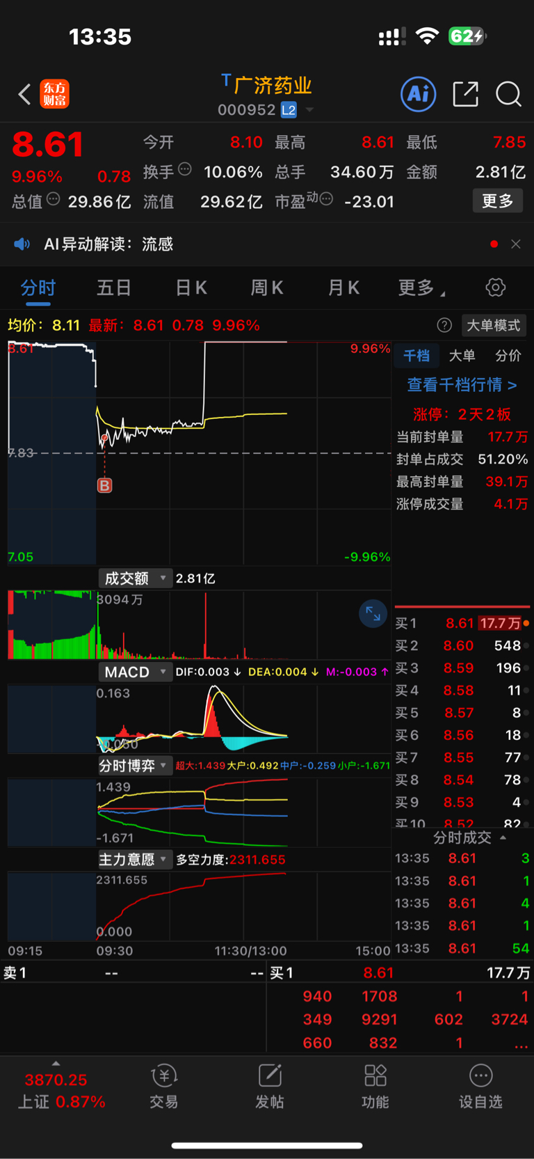 $广济药业(SZ000952)$ 平白无故买的 平白无故涨停了