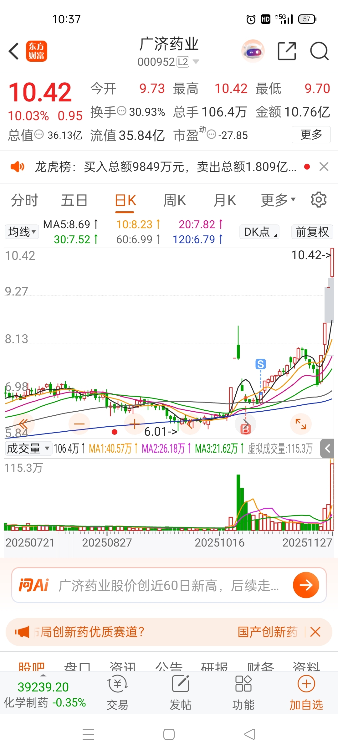 $广济药业(SZ000952)$ 选股没有错就是拿不住,可惜了