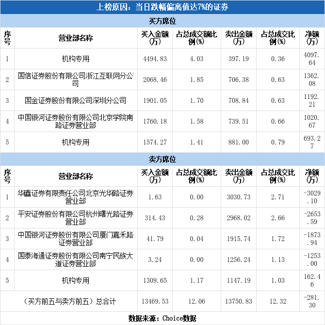 多主力现身龙虎榜,广济药业跌停(11-28)