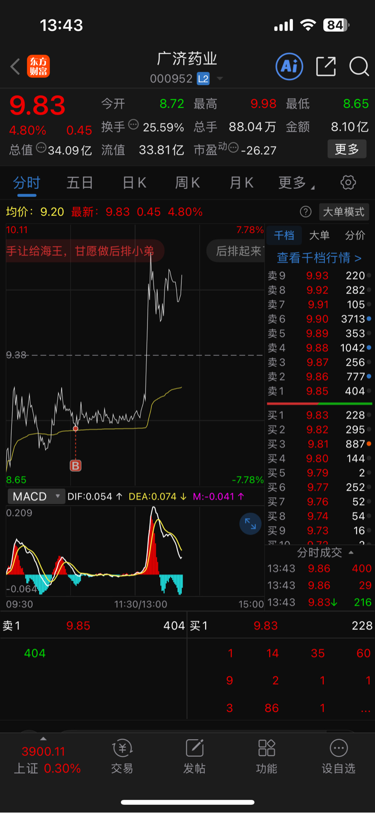 $广济药业(SZ000952)$ 追高有风险! 低位买 不香吗